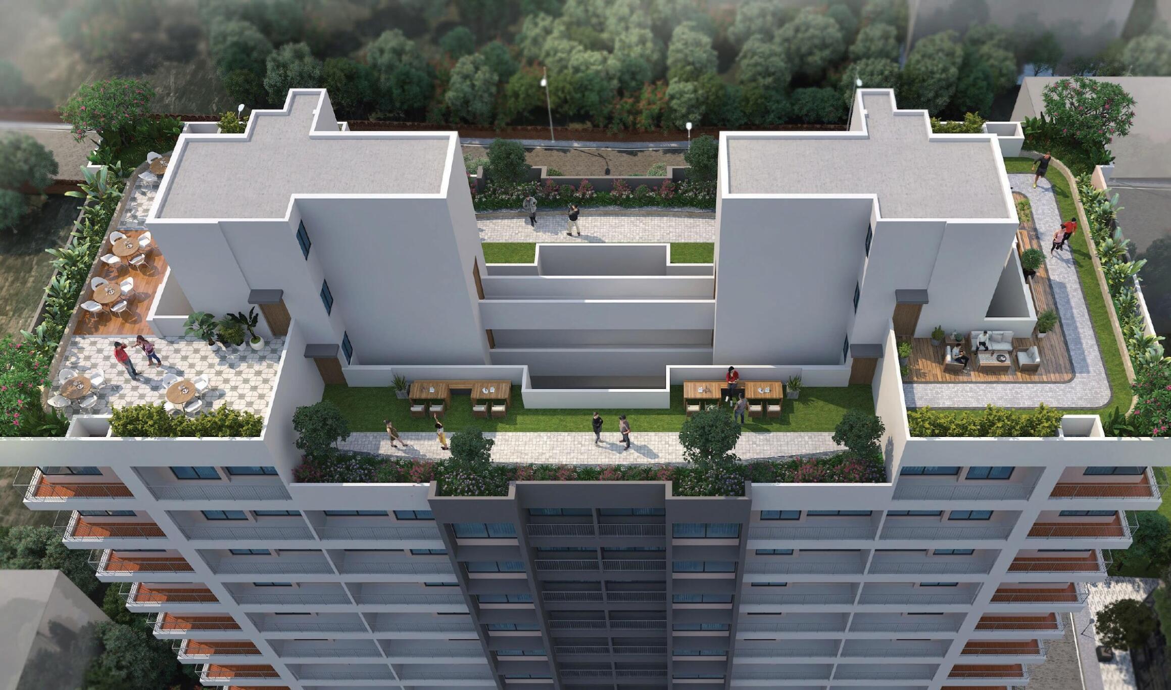 It includes a dedicated Mandir and Sabha Mandap within the project premises, catering specifically to the spiritual and social needs of residents.