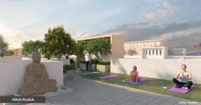 It offers a massive range of over 25 modern amenities, including unique features like a landscaped podium garden, a rooftop sky garden, a stargazing deck, and a dedicated cricket turf.